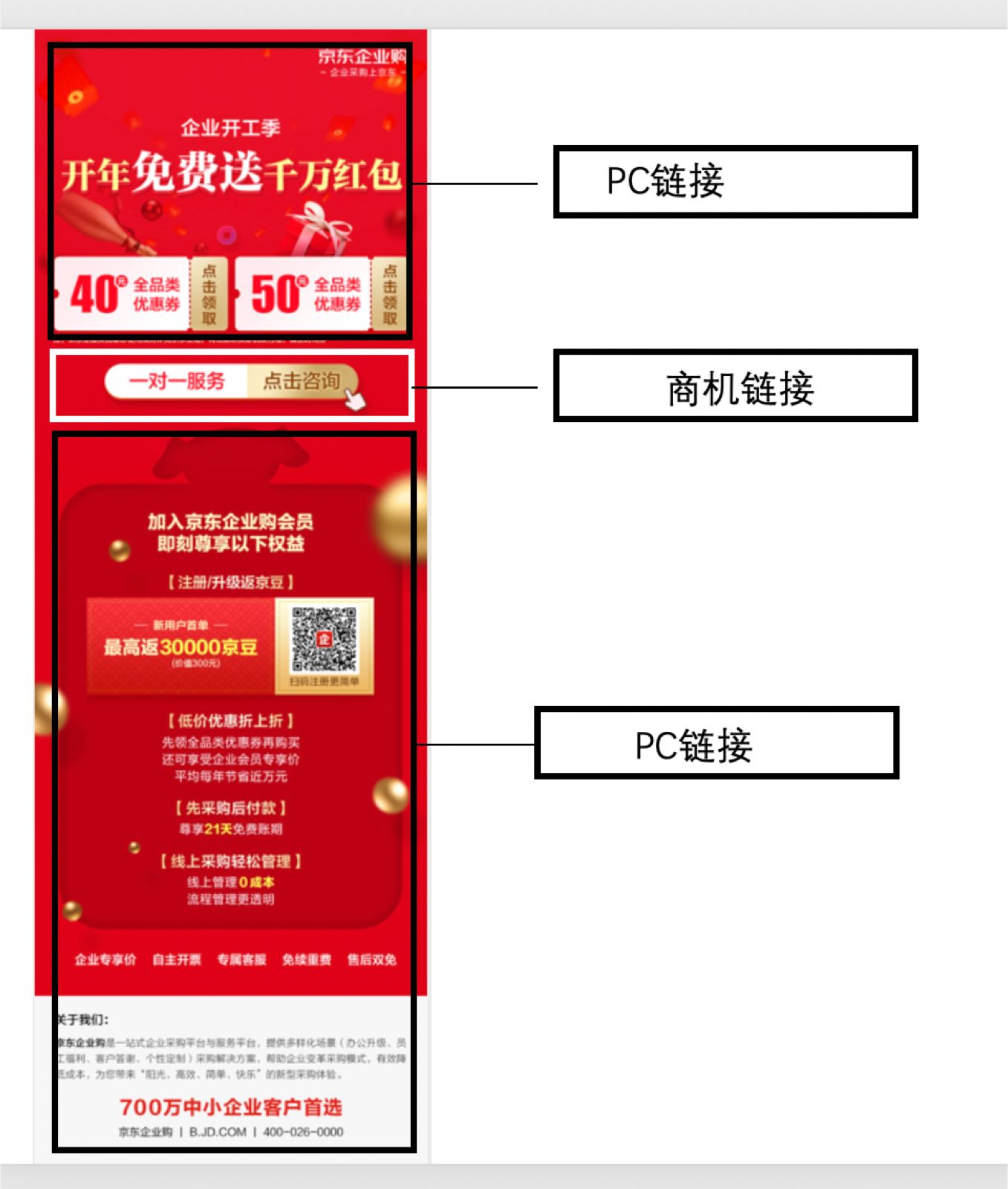 一年一度的企業開工季促銷大戰已激戰正酣,京東企業購推出千萬紅包免費領,領券購物享折上折的促銷活動,通過海量的郵件發送,為網站引流。