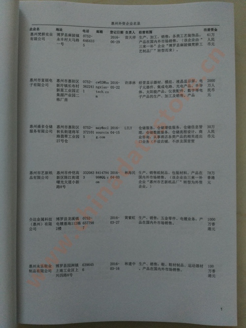 惠州外資企業黃頁 所有惠州外企黃頁 80% RMB:800元