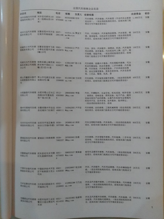 全國汽車銷售企業黃頁 全國汽車銷售企業黃頁 80% - 90% 3000元 附贈上下冊汽車銷售紙質印刷品