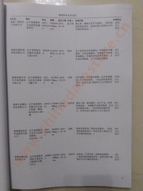 2021版最新盤(pán)錦企業(yè)黃頁(yè)包括《盤(pán)錦制造企業(yè)黃頁(yè)》、《盤(pán)錦民營(yíng)企業(yè)黃頁(yè)》,現(xiàn)優(yōu)惠價(jià):280元/冊(cè)。每?jī)?cè)內(nèi)容包括:?jiǎn)挝幻Q(chēng)、地址、郵編、電話(huà)、傳真、郵箱、經(jīng)營(yíng)范圍等;盤(pán)錦企業(yè)黃頁(yè)涵蓋了近幾年來(lái)最新成立的、有一定規(guī)模的企業(yè),具有非常高的營(yíng)銷(xiāo)價(jià)值。有了這套黃頁(yè)開(kāi)展業(yè)務(wù)也有了針對(duì)性,也省去了盲目去尋找客戶(hù)名單而浪費(fèi)的時(shí)間了,工作效率也會(huì)有很大的提高。歡迎需要盤(pán)錦企業(yè)黃頁(yè)的朋友及時(shí)聯(lián)系我們!
