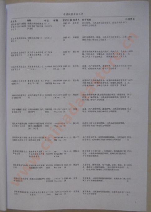 2021版最新孝感企業黃頁包括《孝感制造企業黃頁》、《孝感民營企業黃頁》,現優惠價:280元/冊。每冊內容包括:單位名稱、地址、郵編、電話、傳真、郵箱、經營范圍等;孝感企業黃頁涵蓋了近幾年來最新成立的、有一定規模的企業,具有非常高的營銷價值。有了這套黃頁開展業務也有了針對性,也省去了盲目去尋找客戶名單而浪費的時間了,工作效率也會有很大的提高。歡迎需要孝感企業黃頁的朋友及時聯系我們!