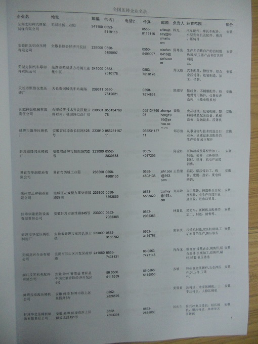 壓鑄企業黃頁收錄了最新的壓鑄企業名單,具有極高的營銷價值,實實在在提高銷售業績