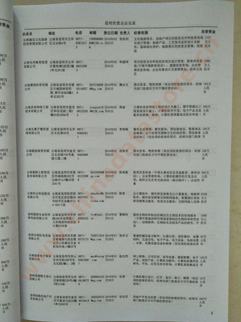 2021版最新昆明企業黃頁包括《昆明制造企業黃頁》、《昆明民營企業黃頁》,現優惠價:280元/冊。每冊內容包括:單位名稱、地址、郵編、電話、傳真、郵箱、經營范圍等;昆明企業黃頁涵蓋了近幾年來最新成立的、有一定規模的企業,具有非常高的營銷價值。有了這套黃頁開展業務也有了針對性,也省去了盲目去尋找客戶名單而浪費的時間了,工作效率也會有很大的提高。歡迎需要昆明企業黃頁的朋友及時聯系我們!